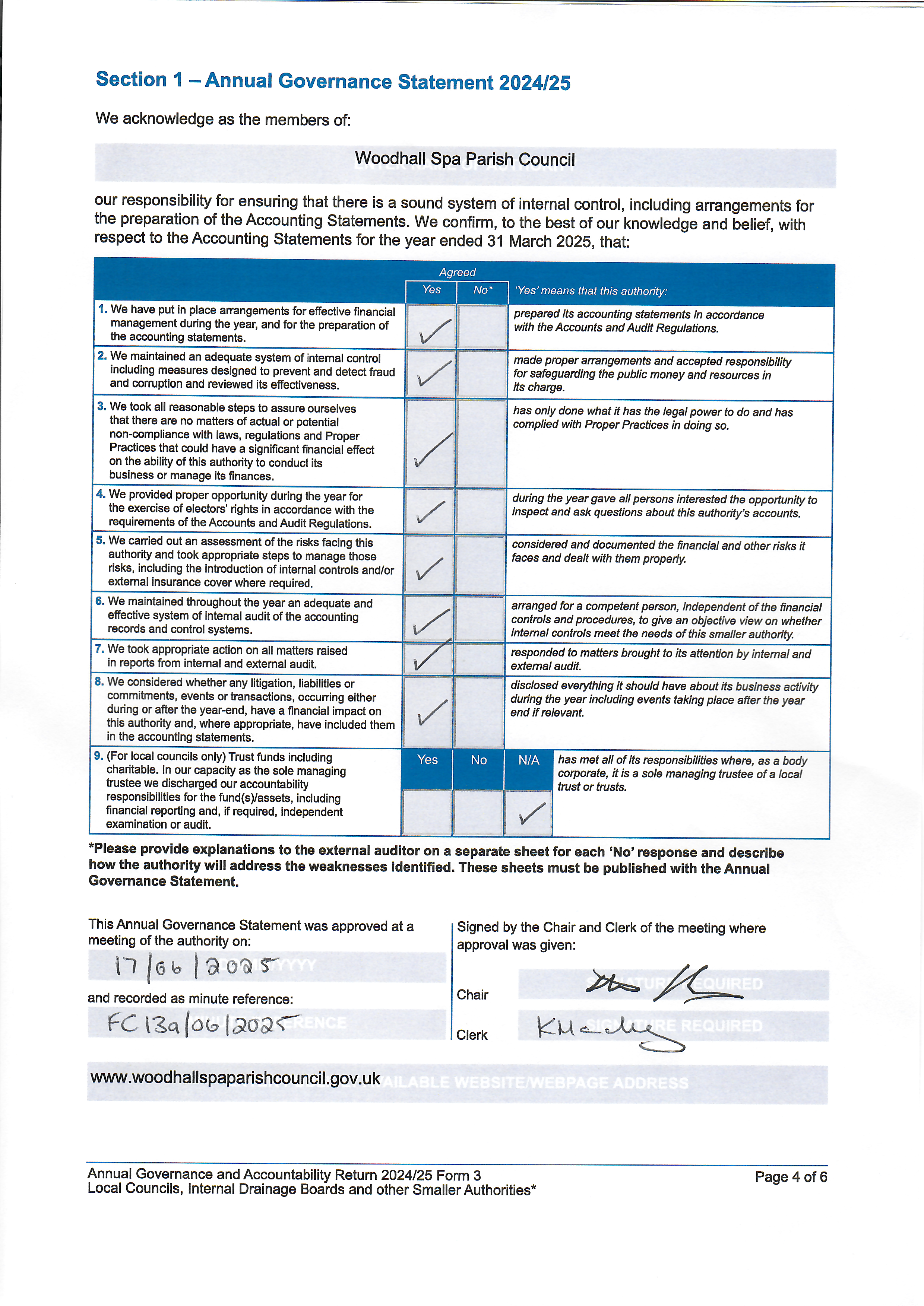 2024-25 AGAR Annual Governance Statement