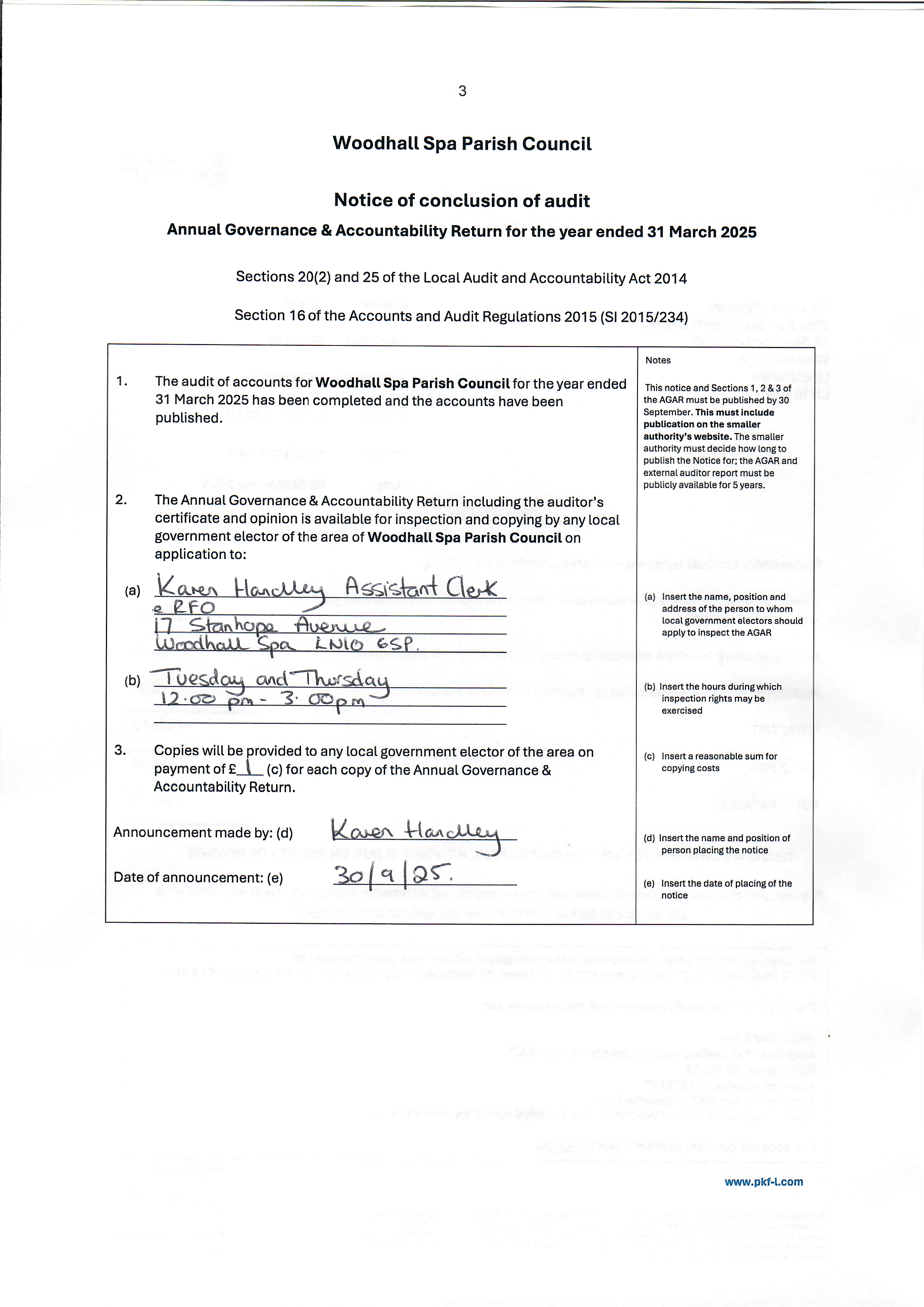 2024-25 Notice of Conclusion of Audit
